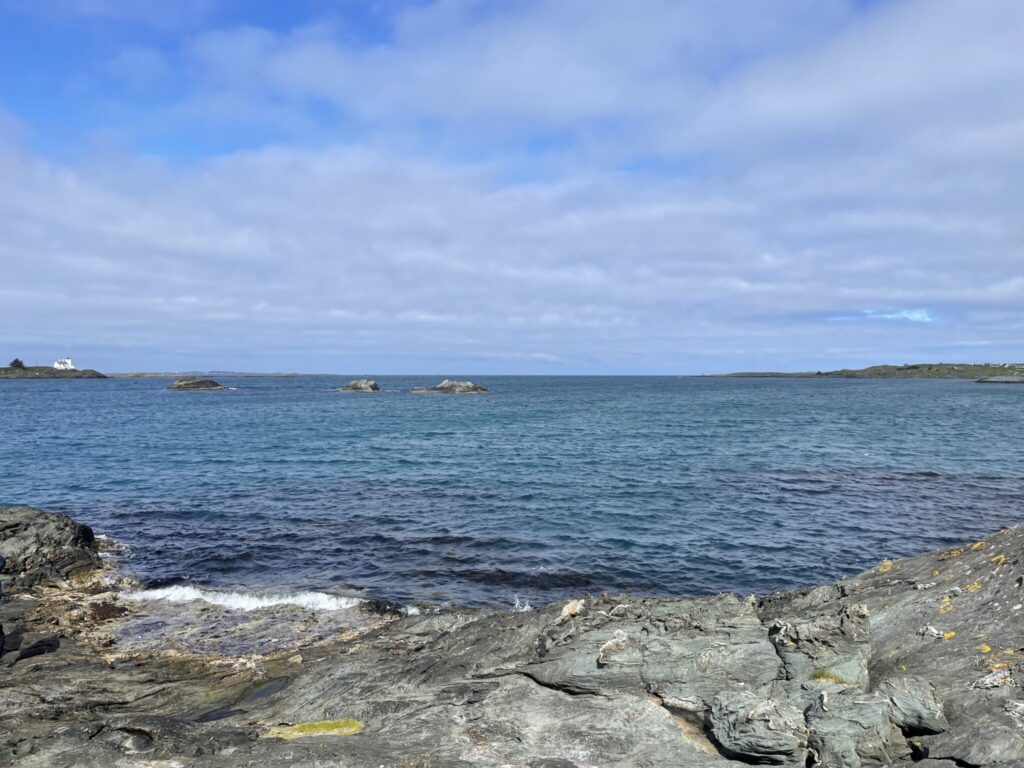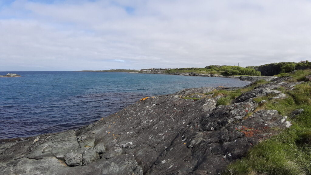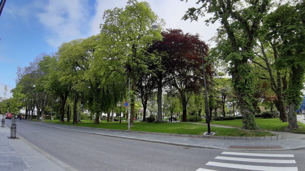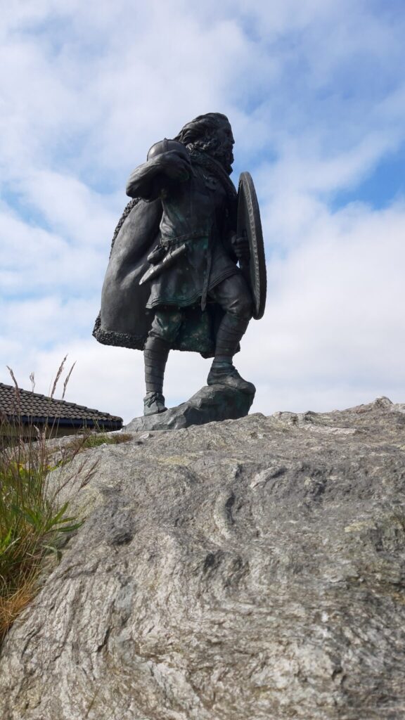 Die erstbeste Straße entlang, und 5 oder 6 Friseurläden später, fanden wir den kleinen Stadtpark, die grüne Oase von Haugesund. Von dort ging es runter zum Wasser mit Sicht auf den verlassenen Leuchtturm. Das Fjordwasser der Nordsee hatte eine wunderbare blaue Färbung und war noch sehr kalt. Am Fjord entlang verlief der Weg bis zum Denkmal für den ersten Vikingerkönig Harald Schönhaar.