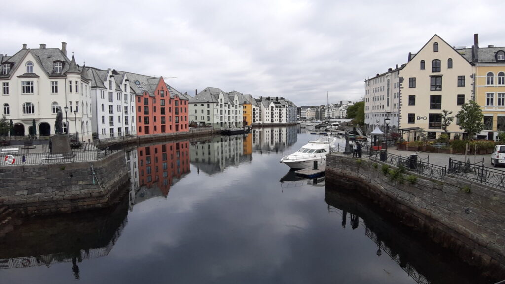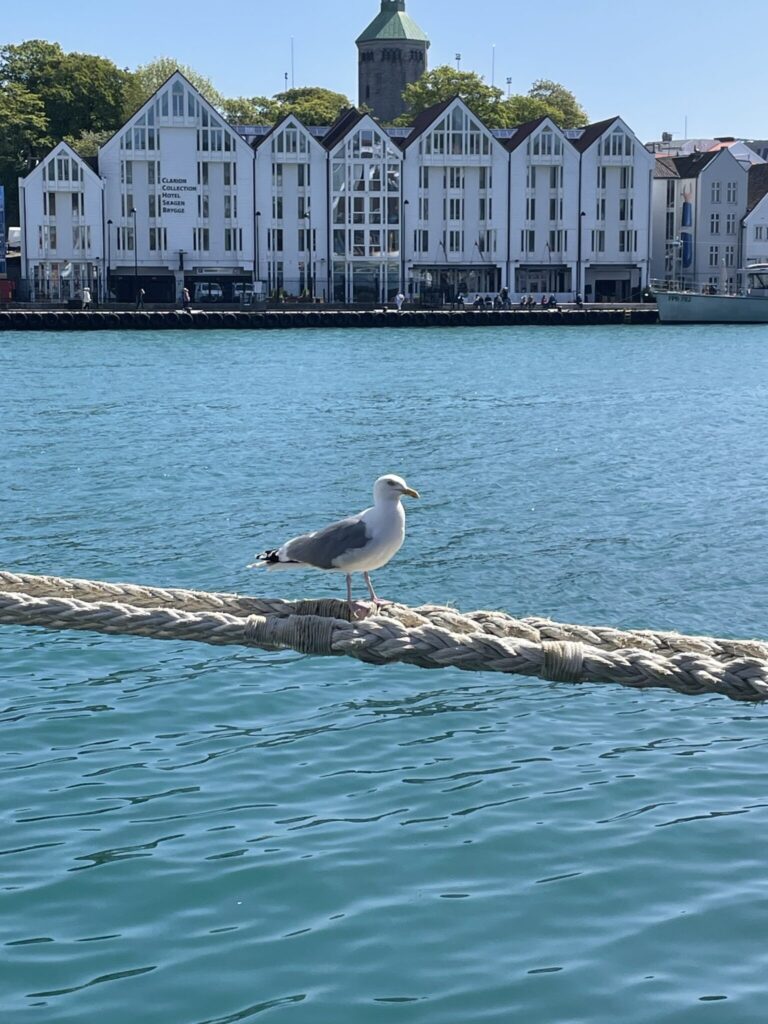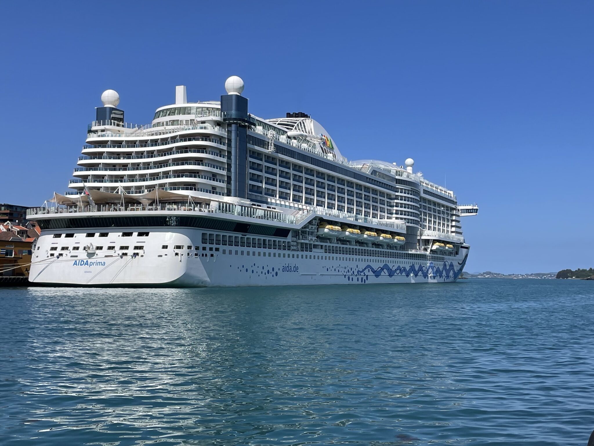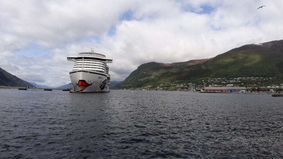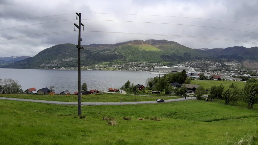 Nach einem Tag und einer Nacht auf See war der Halt in dieser norwegischen Handelsstadt eine willkommene Abwechslung. Wir wollten die Einfahrt in den Fjord von den oberen Decks verfolgen und stellten dafür den Wecker auf 06:30 Uhr. Leider war um diese Zeit schon alles vorbei und das Schiff hatte angelegt. Seltsam, denn die Zeit für das Anlegen der AIDA wurde für 08:00 Uhr prognostiziert.